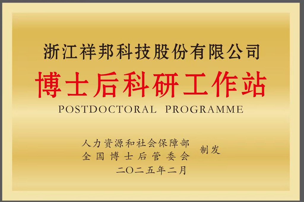 2025年2月經(jīng)國家人社部、全國博士后管理委員會聯(lián)合批準(zhǔn),祥邦科技正式設(shè)立國家級博士后科研工作站。這一里程碑距2023年3月建成浙…